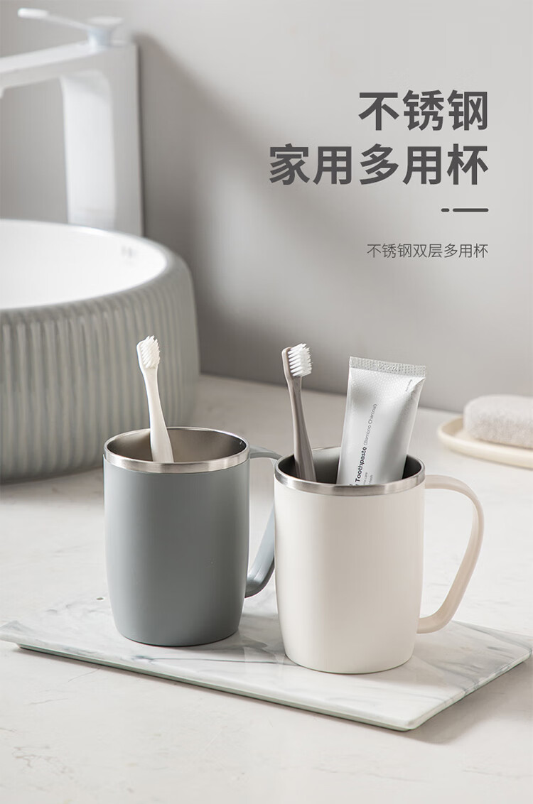 Daisy Leaf 304不锈钢漱口杯情侣轻奢高端刷牙杯抗菌牙刷杯牙缸洗漱口杯白色