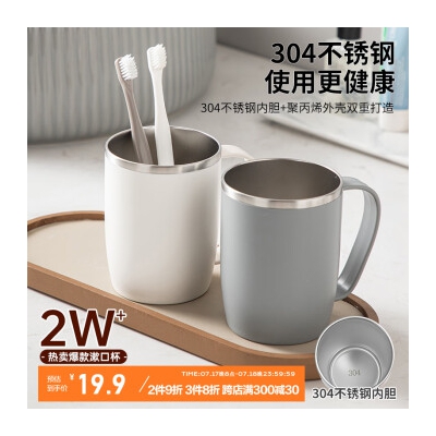 商品名称:Daisy Leaf 304不锈钢漱口杯情侣轻奢高端刷牙杯抗菌牙刷杯牙缸洗漱口杯白色