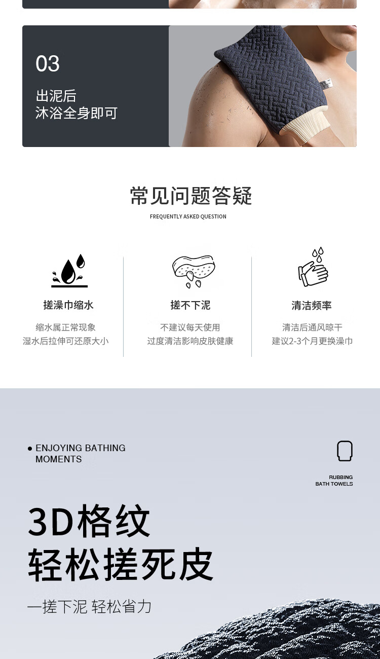 Creative art搓澡巾男士专用洗澡神器 手套搓拉后背拉粗细砂去死皮加大厚双面