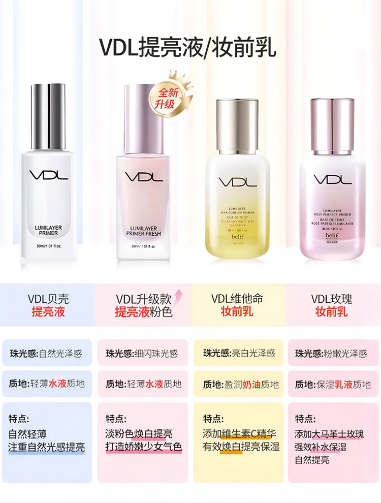VDL 妆前乳保湿vdl贝壳提亮液提亮修饰肤色珠光保湿打底薇蒂艾儿 经典款贝壳提亮液 30ml